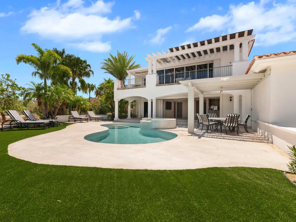 Welcome to this stunning 2 bdr, 2 1/2 bath condo located in the heart of Palmilla within Villas de Oro. As soon as you step inside, you'll love the full length pocket doors that flow out to your own inviting private pool, jacuzzi and beautiful grounds. The open living and dining area is perfect for entertaining guests or simply relaxing at home. The kitchen features sleek stainless steel appliances, granite countertops, and plenty of cabinets. Both bedrooms are spacious and feature their own en-suite bathrooms with luxurious finishes. Completely renovated in 2025 top to bottom, inside and out! Notable features; in-unit laundry, 1 car connected garage, large entry courtyard, convenient 1/2 bth for guests, central air, overlooks 9th hole, pergola and private heated pool & jacuzzi 1 of only 5 out of 54 total Villas de Oro condos that has it's own private pool and jacuzzi. Walk to the Palmilla Tiendas where there's a world class market, 7 restaurants and shopping. Palmilla is truly a golf cart community, take advantage of 3 restaurants and spa in the One & Only Palmilla Hotel, option to join Palmilla Golf Club designed by Jack Nicklaus and Palmilla Dunes with growing restaurant choices along with quite possibly the best swimming beach in all Los Cabos!