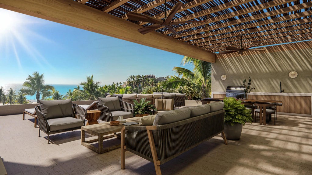 Welcome to MURALLA, a peaceful sanctuary featuring 28 high-end apartments that epitomize the pinnacle of desert oasis living. Perfectly situated just steps from San Jose del Cabo's iconic Surf Breaks of Costa Azul and Acapulquito beaches, within the vibrant Gringo Hills community, this exceptional residential enclave offers an unparalleled connection to the ocean. The Sand House Penthouse residence, a 3-bedroom, 3½ -bathroom home spanning the 4th and 5th floors, features 3,547 sq. ft. of meticulously designed living space with breathtaking beach and community views. Its open-concept layout is complemented by top-tier contemporary finishes, a soothing palette of neutral, natural tones, a private terrace, and an impressive rooftop for exceptional dining and relaxation. Sold unfurnished with the option to upgrade to a fully furnished package. All appliances are included in the purchase price.